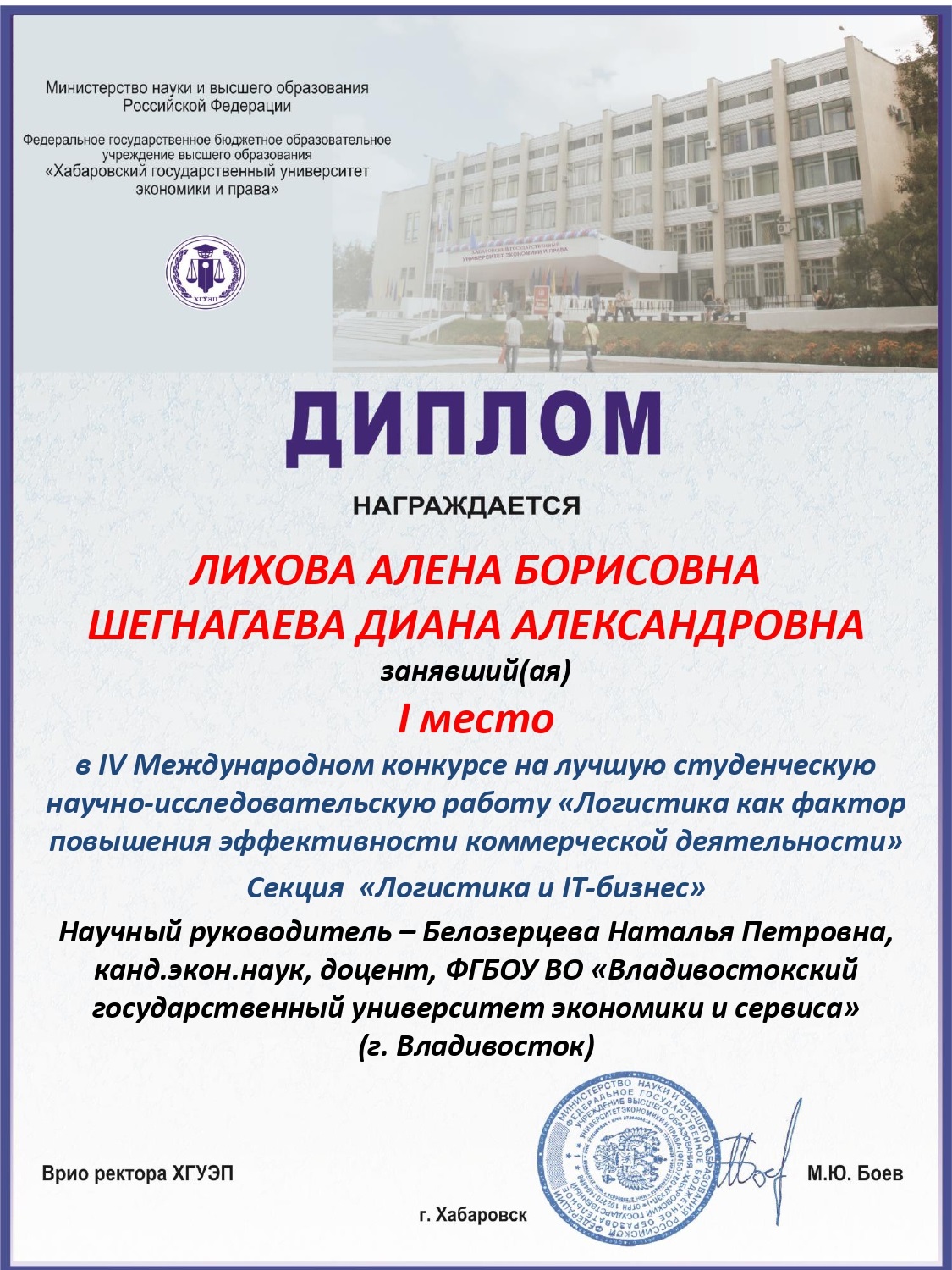 IV Международный конкурс на лучшую студенческую научно-исследовательску. работу "Логистика как фактор повышения эффективности коммерческой деятельности", секция "Логистика и IT-бизнес"