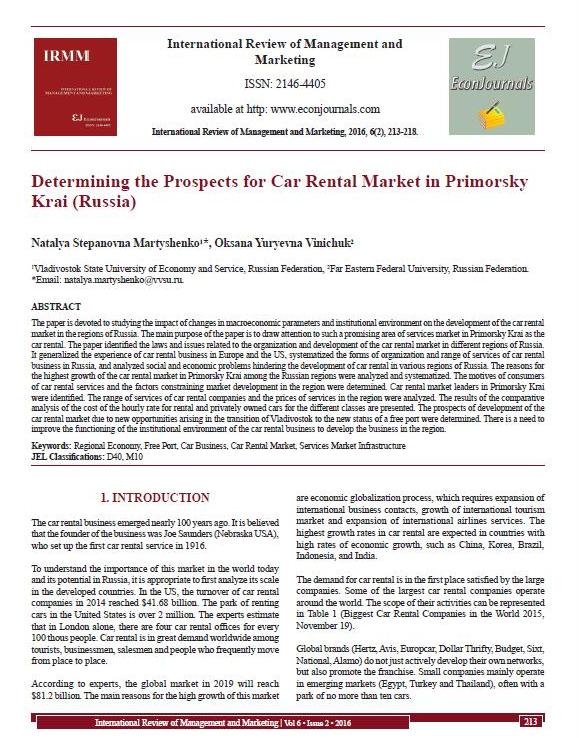 Determining the Prospects for Caar Rental Market in Primorsky Krai (russia)