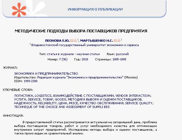 Методические подходы выбора поставщиков предприятия