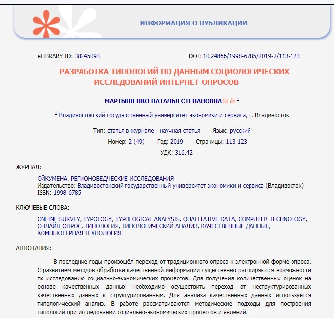 Разработка типологий по данным социологических исследований интернет-ресурсов
