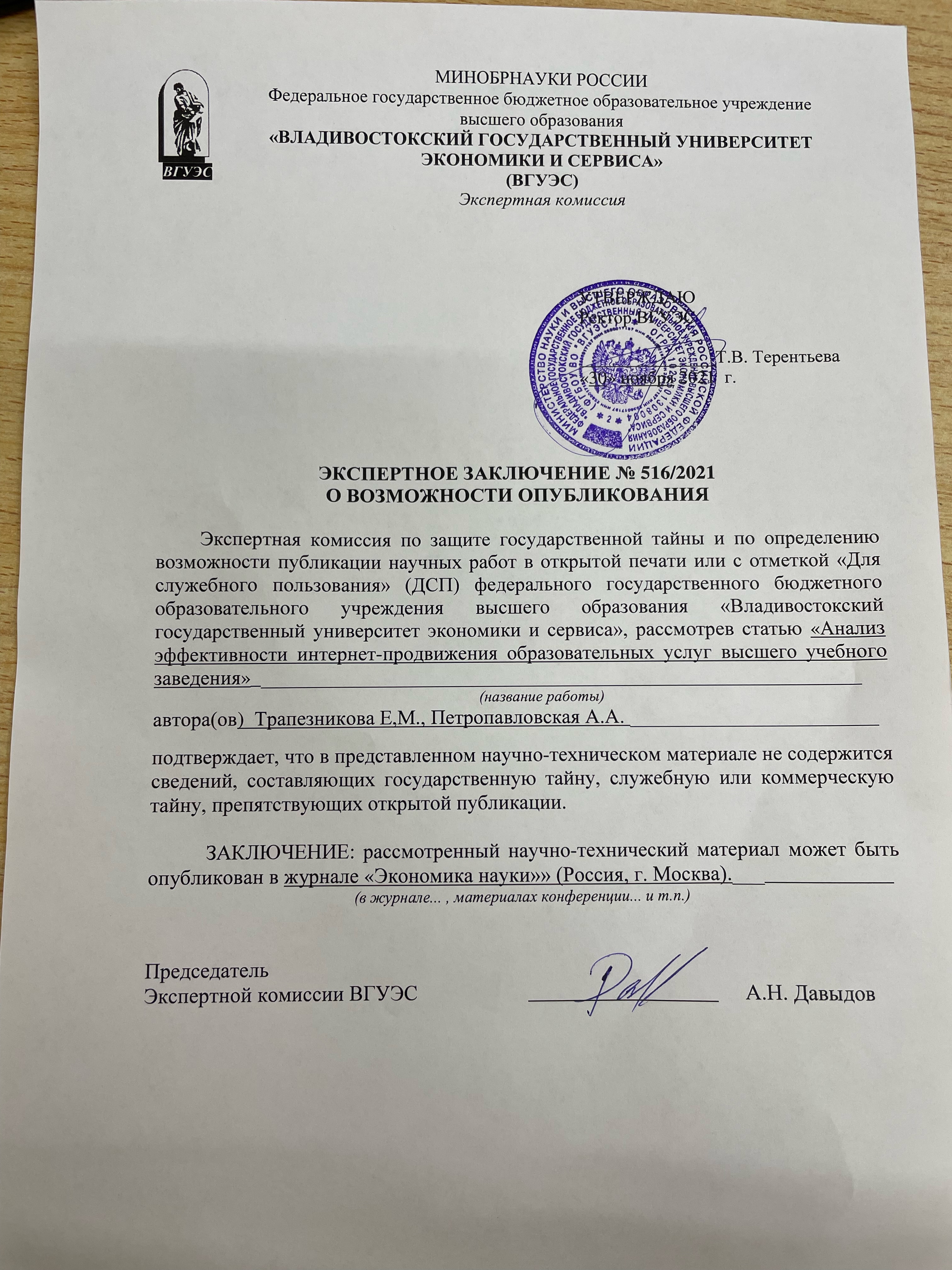 Анализ эффективности интернет-продвижения образовательных услуг высшего учебного заведения