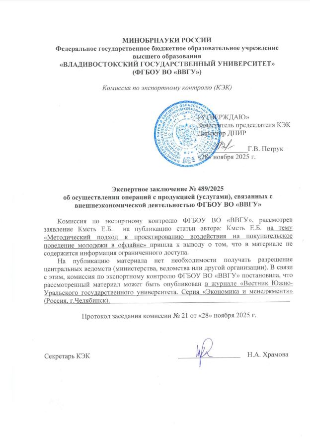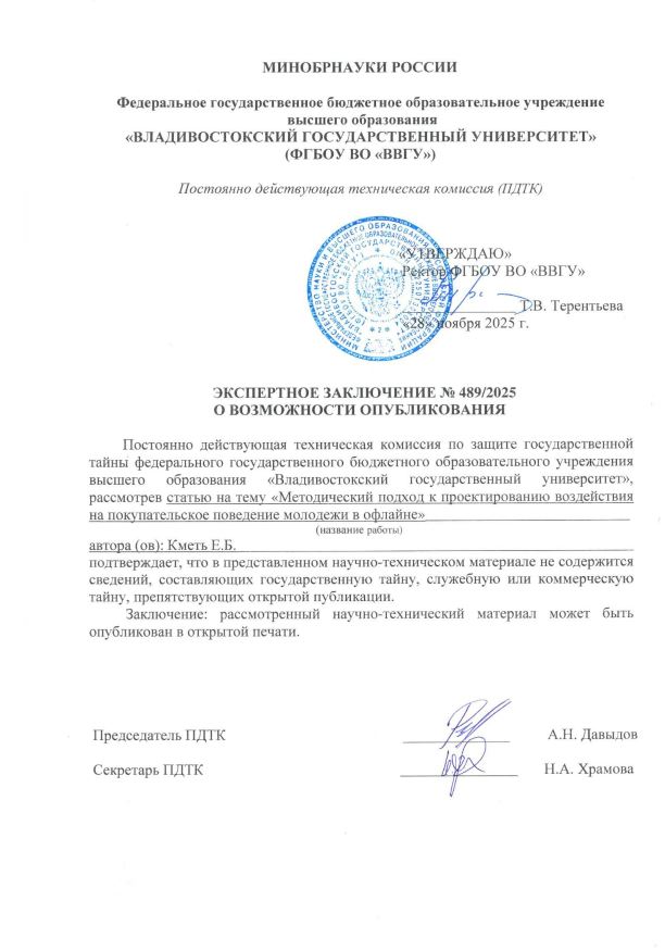 МЕТОДИЧЕСКИЙ ПОДХОД К ПРОЕКТИРОВАНИЮ ВОЗДЕЙСТВИЯ НА ПОКУПАТЕЛЬСКОЕ ПОВЕДЕНИЕ МОЛОДЕЖИ В ОФЛАЙНЕ