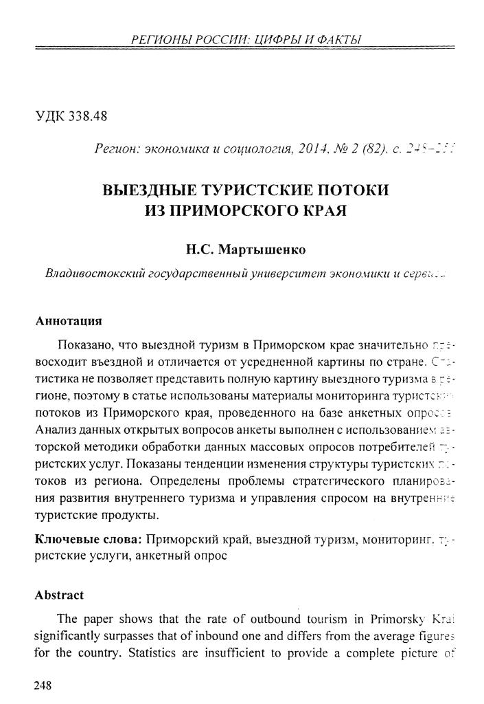 Мониторинг выездных туристских потоков из Приморского края