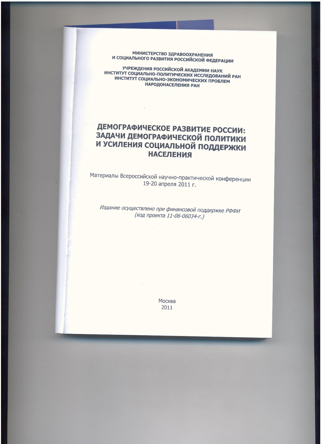 Демографическое развитие России: задачи демографической политики и усиления социальной поддержки населения. Материалы всероссийской научно-практической конференции